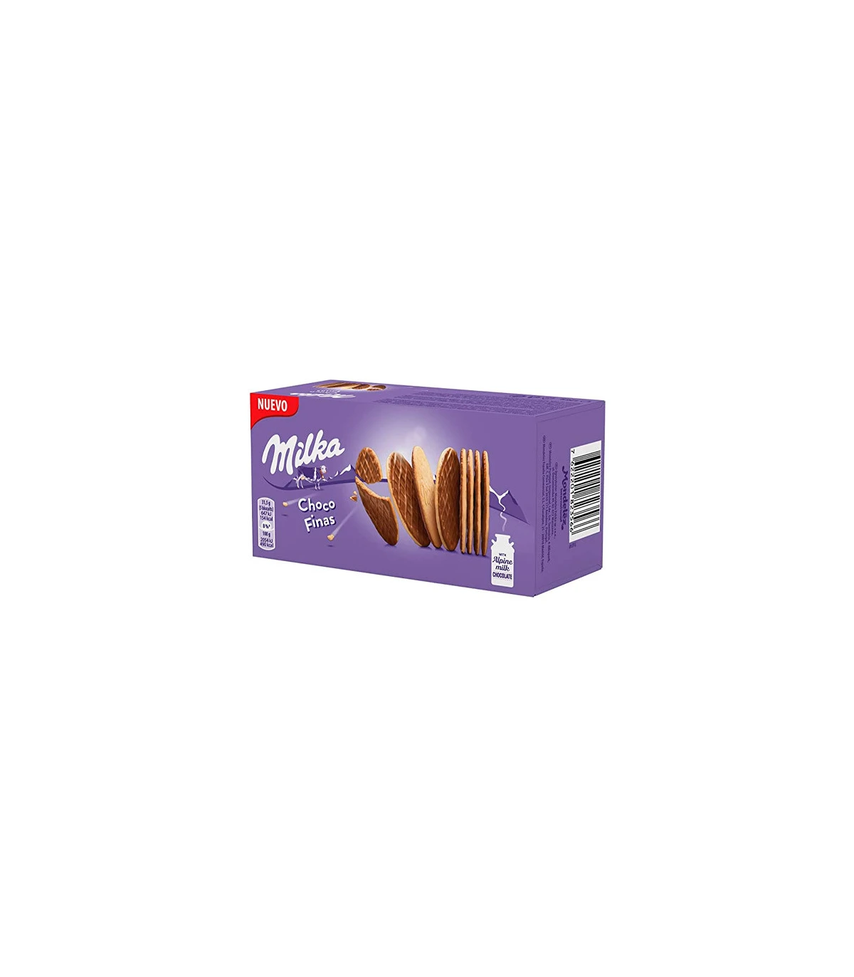 Milka Choco Finas se presentan en un práctico formato de 126 gramos, distribuidas en cajas de 12 unidades que facilitan su almacenamiento y exposición. Su envase protege las galletas, conservando su textura crujiente y su sabor durante más tiempo. El packaging destaca por su diseño atractivo y fácilmente reconocible, con la imagen característica de Milka que capta la atención en el punto de venta. Gracias a su formato compacto, el producto puede colocarse cómodamente en estanterías, expositores o zonas cercanas al mostrador, favoreciendo la compra por impulso. Este formato resulta cómodo para transportar y organizar, ofreciendo una presentación cuidada que mejora la visibilidad del producto.