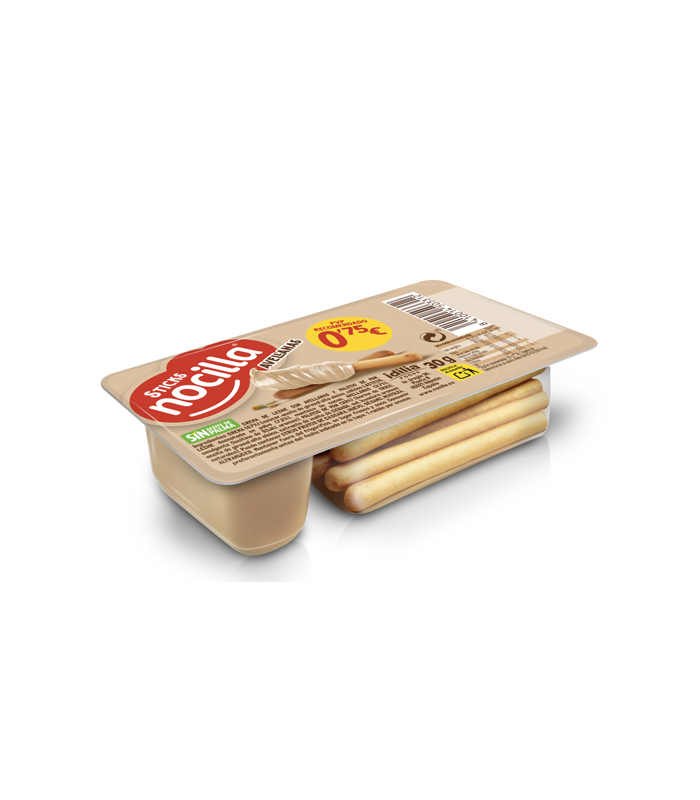 Nocilla Sticks Avellana 30 g (24 ud) es la solución perfecta para quienes buscan un snack dulce, práctico y delicioso. Cada unidad ofrece la irresistible combinación de crujientes palitos de pan y la clásica crema de leche con avellanas de Nocilla, una marca que lleva generaciones endulzando nuestros momentos más especiales. Su formato individual de 30 gramos contiene dos compartimentos: uno con ocho palitos de pan y otro con una deliciosa crema, permitiendo disfrutar del ritual de untar en cualquier momento y lugar. La textura cremosa y el intenso sabor a avellana encantarán a pequeños y mayores por igual. Contiene gluten, por lo que no es apto para personas celíacas.